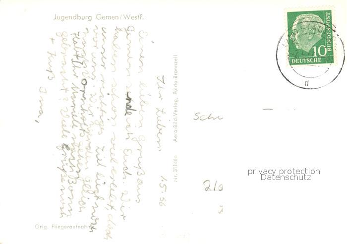 73105130 alte Postkarte Gemen Jugendburg Fliegeraufnahme postalisch gelaufen Erhaltung siehe scans [KathaD81] KatCode: 11110005554012
