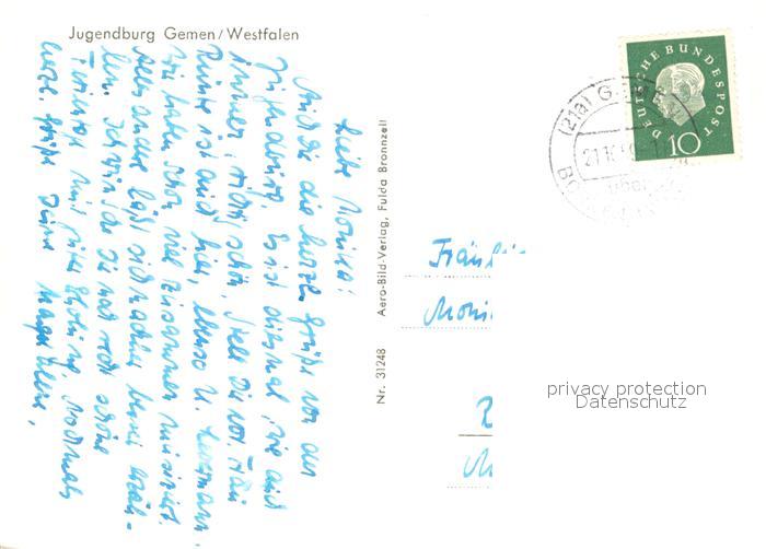 73724820 alte Postkarte Gemen Jugendburg Gemen Fliegeraufnahme postalisch gelaufen Erhaltung siehe scans [WerneD78] KatCode: 11110005554012