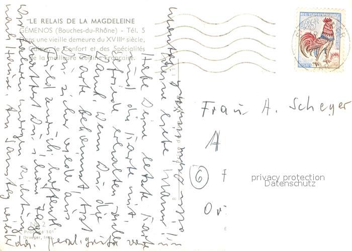 13721034 Gemenos 13 Le Relais de la Magdeleine Freiterrasse postalisch gelaufen Erhaltung siehe scans [WerneD78] carte postale Wern Katcode 11170013313042