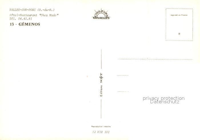 13356776 Gemenos Hotel Restaurant Chez Mado postalisch nicht gelaufen Erhaltung siehe scans [WerneD78] KatCode: 11170013313042