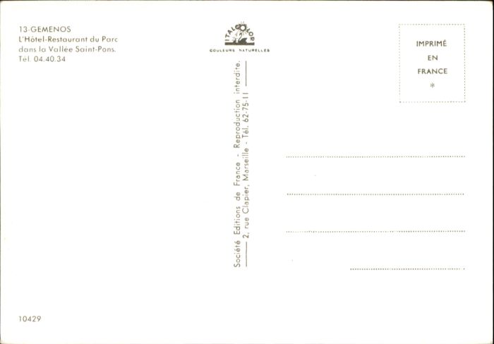 10795628 Gemenos Hotel Restaurant du Parc KatCode 11170013313042