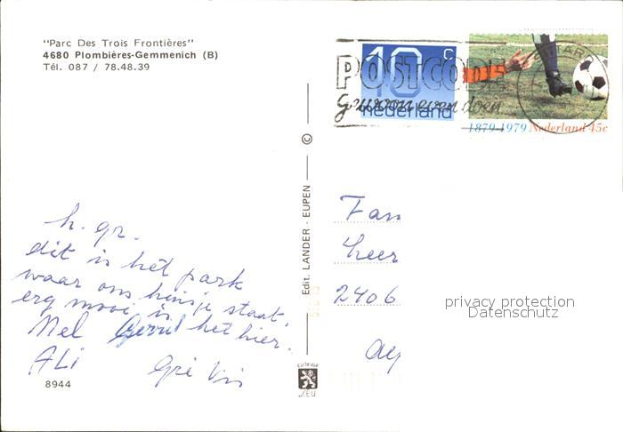 72254833 carte postale Gemmenich Parc Des Trois Frontieres postalisch gelaufen Erhaltung siehe scans KatCode: 11070063008098