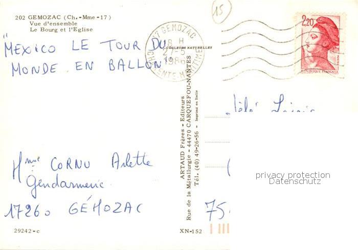 13162394 carte postale Gemozac Le Bourg et l’Eglise vue aérienne postalisch gelaufen Erhaltung siehe scans [FriedD77] KatCode: 11170017417172