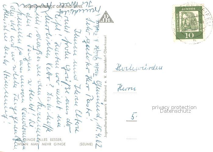 73730984 alte Postkarte Gemuend Eifel Jugendherberge postalisch gelaufen Erhaltung siehe scans [WerneD78] KatCode: 11110005366036