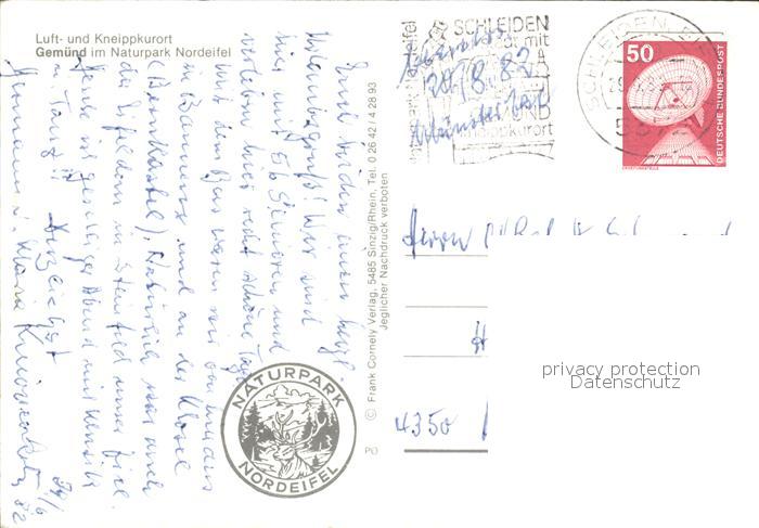 72182476 alte Postkarte Gemuend Eifel Kirche Kurhaus Kurkonzert Gasthaus postalisch gelaufen Erhaltung siehe scans KatCode: 11110005366036