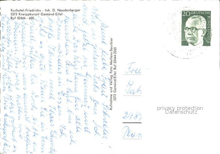 72182473 alte Postkarte Gemuend Eifel Kurhotel Friedrichs postalisch gelaufen Erhaltung siehe scans KatCode: 11110005366036