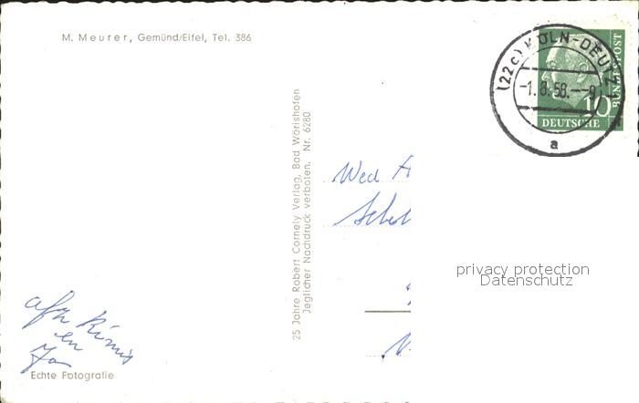 72060424 alte Postkarte Gemuend Eifel Ortsansicht mit Kirche Luftkurort postalisch gelaufen Erhaltung siehe scans KatCode: 11110005366036