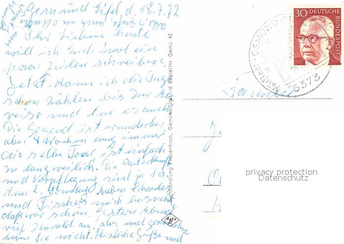 72844753 alte Postkarte Gemuend Eifel Parkpartie Stadthalle postalisch gelaufen Erhaltung siehe scans [KathaD81] KatCode: 11110005366036