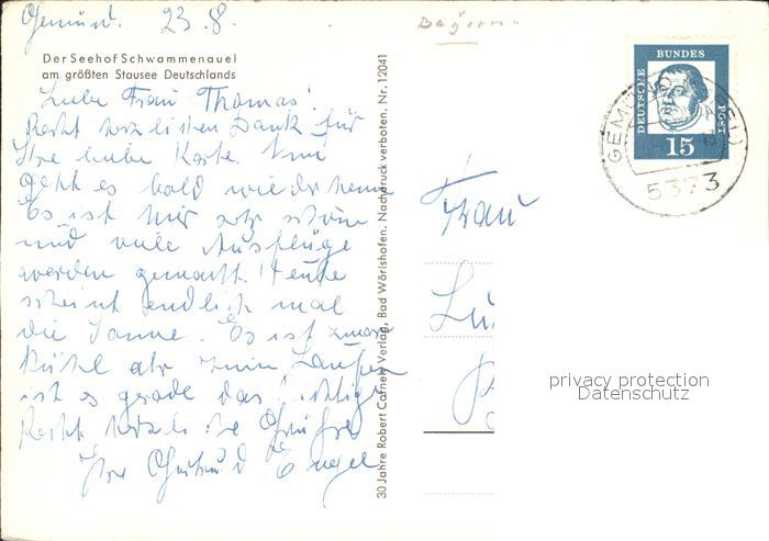 72305561 alte Postkarte Gemuend Eifel Seehof Schwammenauel postalisch gelaufen Erhaltung siehe scans KatCode: 11110005366036