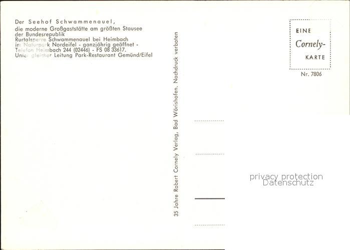 72542690 Gemuend Eifel Seehof Schwammenauel postalisch nicht gelaufen Erhaltung siehe scans [KathaD75 kv015box] KatCode: 11110005366036