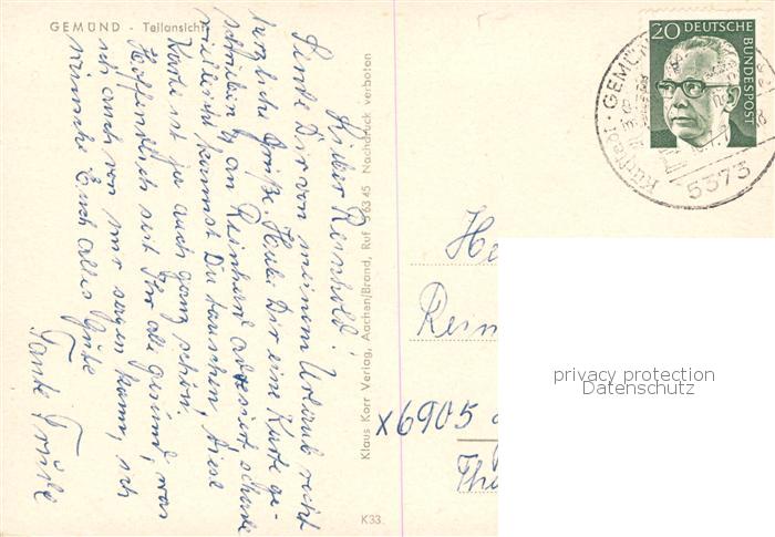 73853623 alte Postkarte Gemuend Eifel Teilansicht Kirche postalisch gelaufen Erhaltung siehe scans [WerneD78] KatCode: 11110005366036