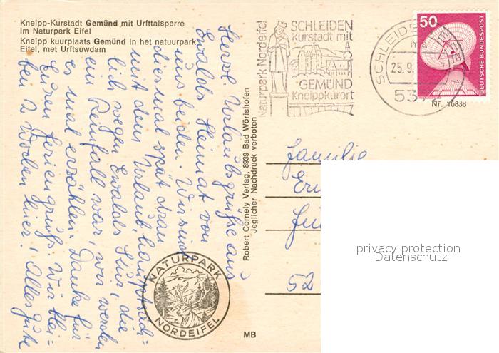 73181014 alte Postkarte Gemuend Eifel Urfttalsperre Panorama Kirche postalisch gelaufen Erhaltung siehe scans [KathaD81] KatCode: 11110005366036
