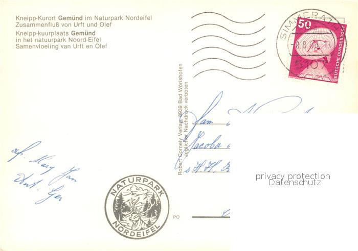 73308122 alte Postkarte Gemuend Eifel Zusammenfluss Urft Olef postalisch gelaufen Erhaltung siehe scans [NatalD47] KatCode: 11110005366036