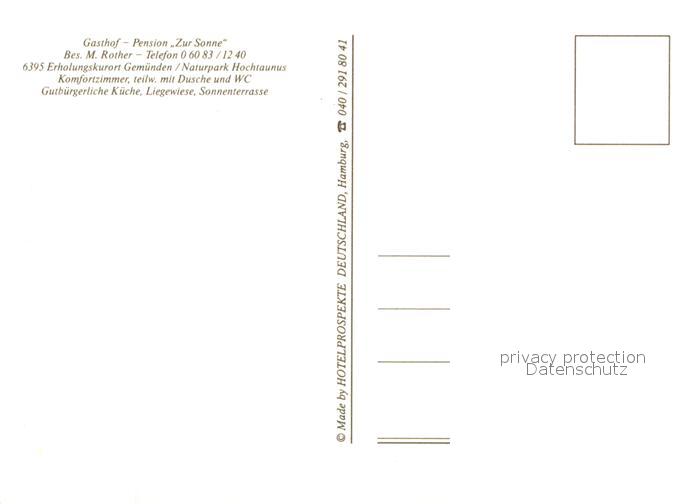 73615211 Gemuenden Taunus Gasthof Pension Zur Sonne Terrasse Gaststube postalisch nicht gelaufen Erhaltung siehe scans [WerneD78] KatCode: 11110006434013