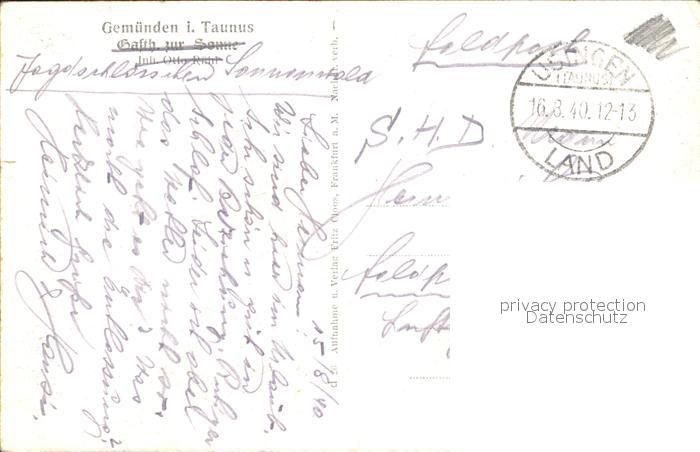 32184473 alte Postkarte Gemuenden Taunus Jagdschloesschen postalisch gelaufen Feldpost Erhaltung siehe scans KatCode: 11110006434013