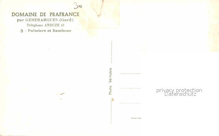 12617678 Generargues Palmiers et Bambous postalisch nicht gelaufen Erhaltung siehe scans [NatalD47] KatCode: 11170030130129