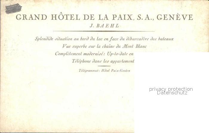 12588788 Geneve GE Grand Hotel de la Paix postalisch nicht gelaufen Erhaltung siehe scans [LiesaD40] KatCode: 11470080295856