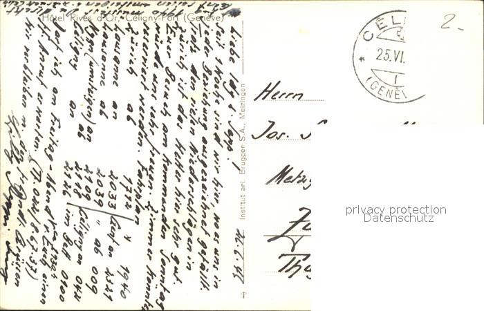 11779386 alte Postkarte Geneve GE Hotel Rives d Or Celigny Port postalisch gelaufen Erhaltung siehe scans KatCode: 11470080295856