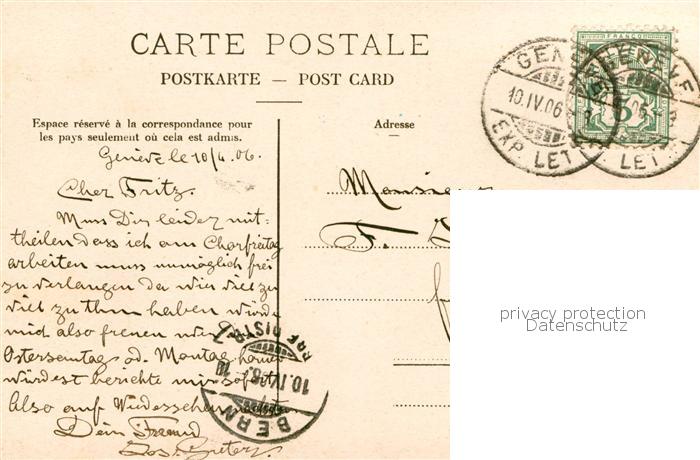 13799947 alte Postkarte Geneve GE Vue generale et Mont Blanc postalisch gelaufen Erhaltung siehe scans [FriedD77] KatCode: 11470080295856