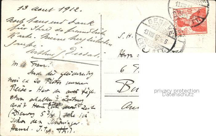 12524918 alte Postkarte Genf GE Gebaeude Denkmal Reiterstandbild postalisch gelaufen Erhaltung siehe scans KatCode: 11470080295858
