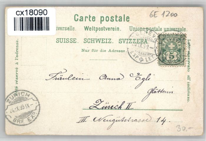 10723219 alte Postkarte Genf GE Genf Denkmal National postalisch gelaufen KatCode: 11470080295858