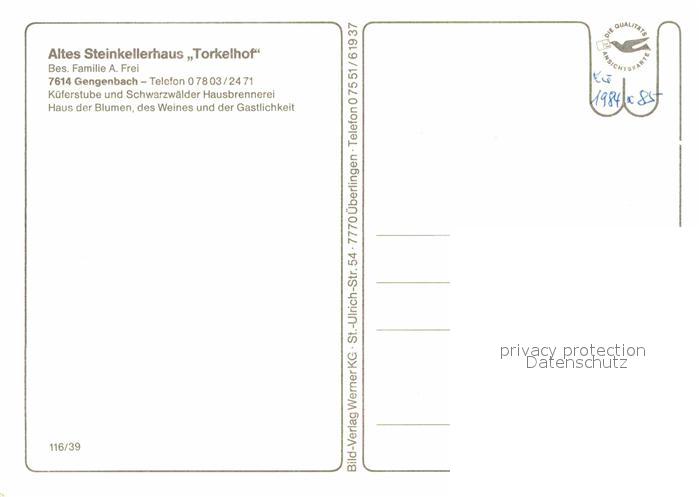 72663222 Gengenbach Altes Steinkellerhaus Torkelhof postalisch nicht gelaufen Erhaltung siehe scans [NatalD47] KatCode: 11110008317034
