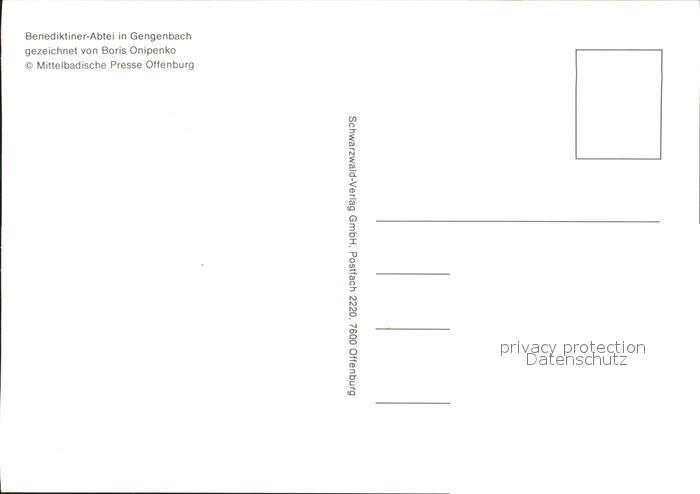 71830773 Gengenbach Benediktiner-Abtei Zeichnung Boris Onipenko postalisch nicht gelaufen Erhaltung siehe scans KatCode: 11110008317034