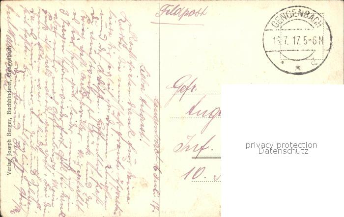 71839868 alte Postkarte Gengenbach Blick von der Kapelle postalisch gelaufen Feldpost Erhaltung siehe scans KatCode: 11110008317034