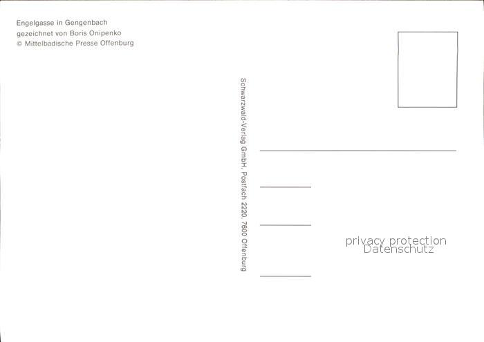 71830779 Gengenbach Engelgasse Zeichnung Boris Onipenko postalisch nicht gelaufen Erhaltung siehe scans KatCode: 11110008317034