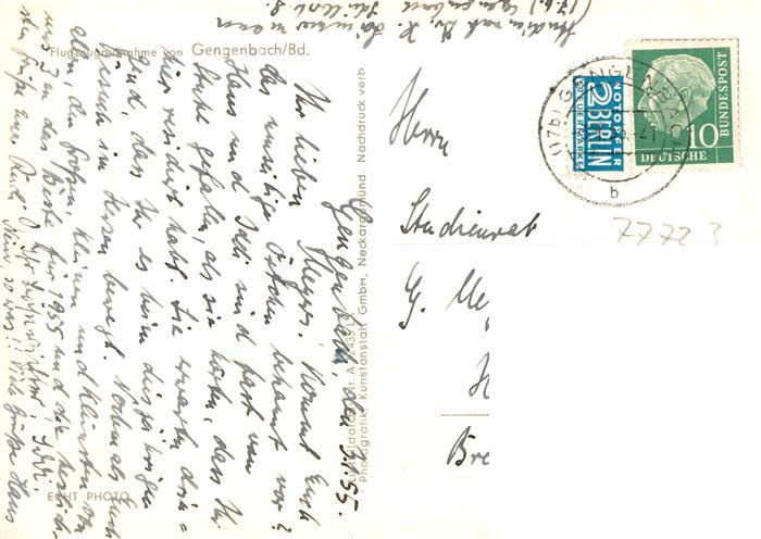 73891598 alte Postkarte Gengenbach Fliegeraufnahme postalisch gelaufen Erhaltung siehe scans [FriedD77] KatCode: 11110008317034