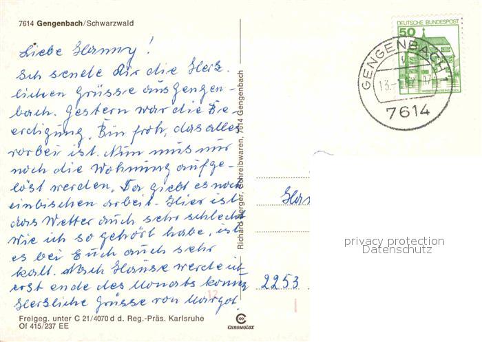 72691330 alte Postkarte Gengenbach Fliegeraufnahme postalisch gelaufen Erhaltung siehe scans [FriedD77] KatCode: 11110008317034