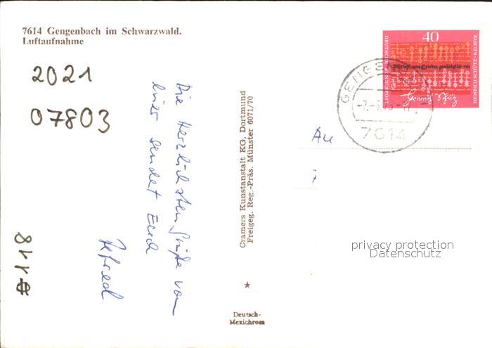 72572706 alte Postkarte Gengenbach Fliegeraufnahme postalisch gelaufen Erhaltung siehe scans [AndreD76] KatCode: 11110008317034