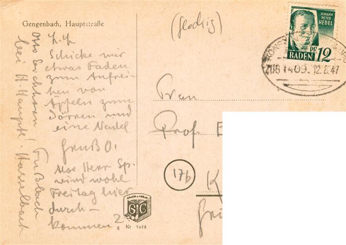 73900551 alte Postkarte Gengenbach Hauptstrasse Brunnen postalisch gelaufen Bahnpost Erhaltung siehe scans [WerneD78] KatCode: 11110008317034