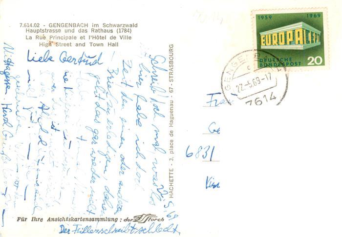 73928491 alte Postkarte Gengenbach Hauptstrasse mit Rathaus postalisch gelaufen Erhaltung siehe scans [FriedD77] KatCode: 11110008317034