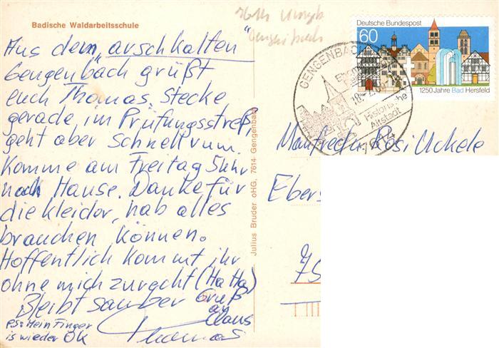 73928543 alte Postkarte Gengenbach Hoellhof Badische Waldarbeitsschule postalisch gelaufen Erhaltung siehe scans [FriedD77] KatCode: 11110008317034