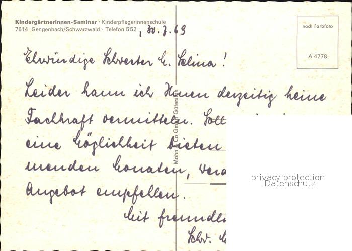 72421112 Gengenbach Kindergaernterinnen-Seminar postalisch nicht gelaufen Erhaltung siehe scans KatCode: 11110008317034