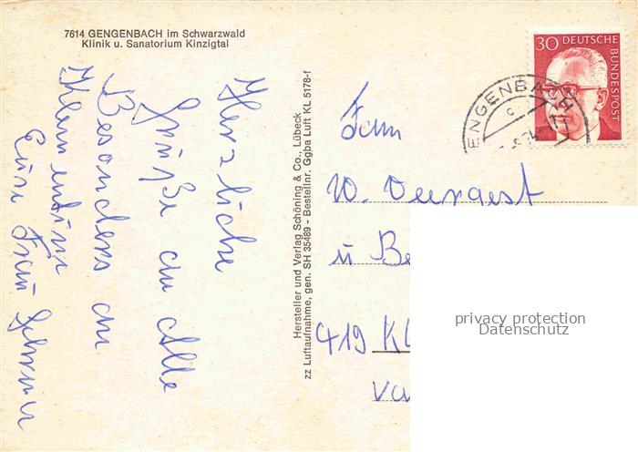 74085190 alte Postkarte Gengenbach Klinik und Sanatorium Kinzigtal Fliegeraufnahme postalisch gelaufen Erhaltung siehe scans [WerneD78] KatCode: 11110008317034