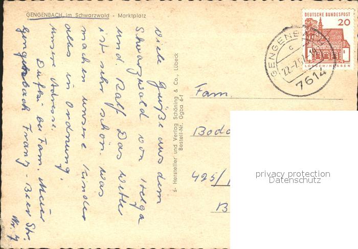 72182464 alte Postkarte Gengenbach Marktplatz Brunnen postalisch gelaufen Erhaltung siehe scans KatCode: 11110008317034