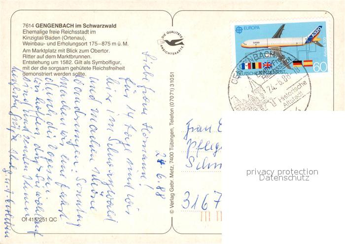 73176512 alte Postkarte Gengenbach Marktplatz Brunnen Blick zum Obertor Wappen postalisch gelaufen Erhaltung siehe scans [FriedD77] KatCode: 11110008317034