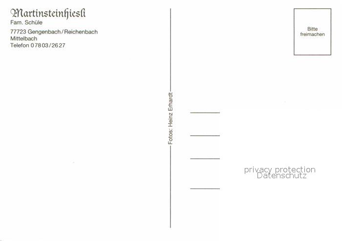 72674747 Gengenbach Martinsteinhiesli Vesperplatte postalisch nicht gelaufen Erhaltung siehe scans [WerneD78] KatCode: 11110008317034