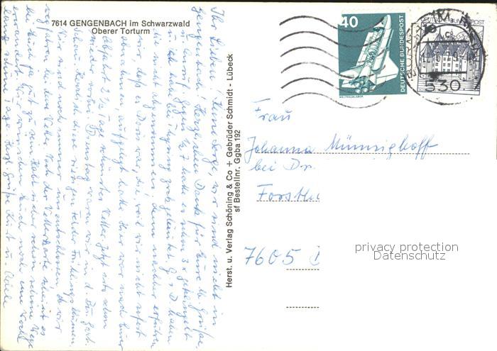 72572767 alte Postkarte Gengenbach Oberer Torturm postalisch gelaufen Erhaltung siehe scans [AndreD76] KatCode: 11110008317034