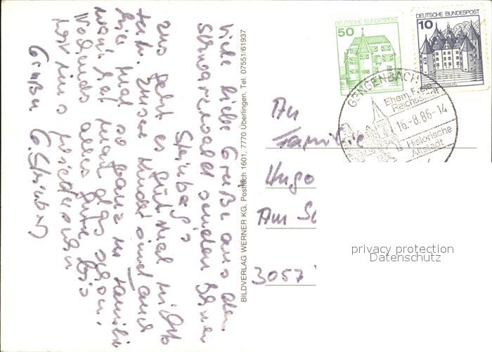 72415423 alte Postkarte Gengenbach Schwarzwald Schloss Denkmal Kirche Minigolfplatz Ortsansicht postalisch gelaufen Erhaltung siehe scans KatCode: 11110008317034