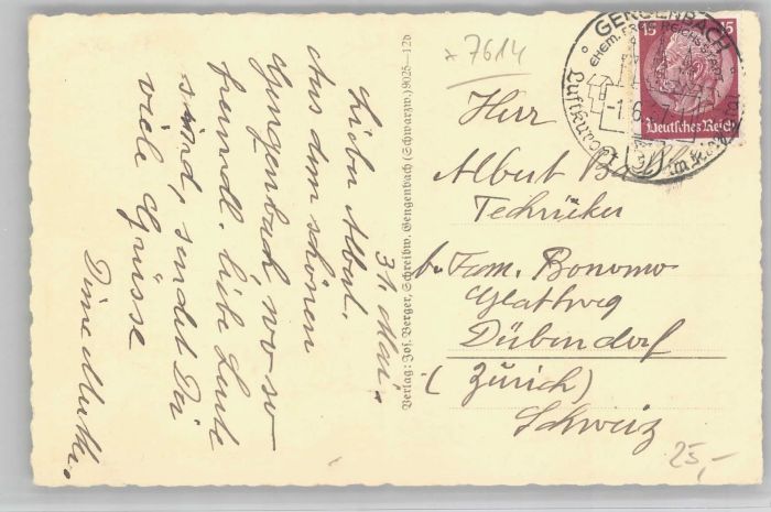 40713420 Gengenbach [Stempelabschlag] Engelgasse KatCode 11110008317034