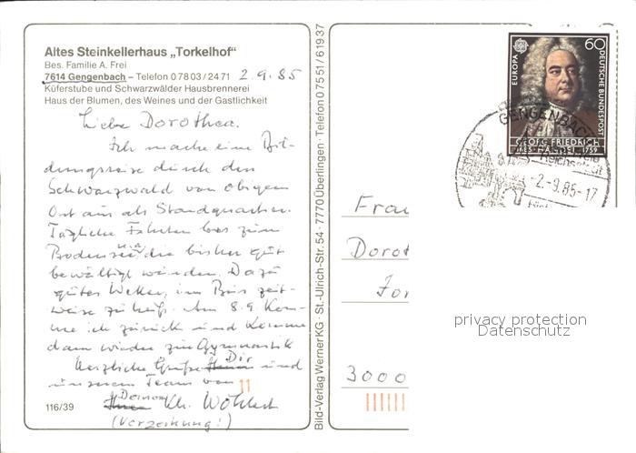 72333069 alte Postkarte Gengenbach Torkelhof und Torkelkeller postalisch gelaufen Erhaltung siehe scans KatCode: 11110008317034