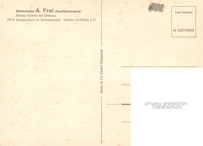 73088393 Gengenbach Weinstube A. Frei Zunftbrennerei postalisch nicht gelaufen Erhaltung siehe scans [PaolaD17] KatCode: 11110008317034