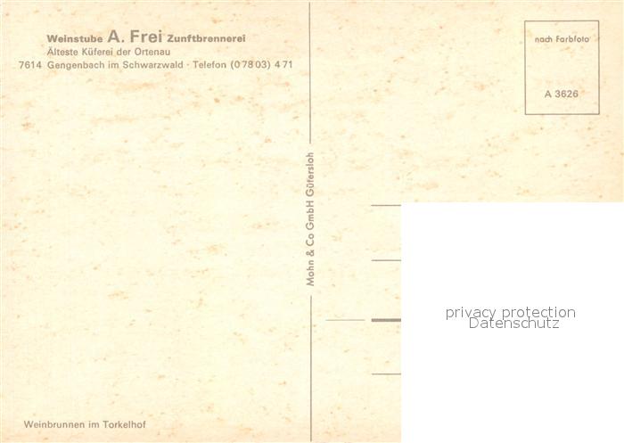 73080883 Gengenbach Weinstube A. Frei Zunftbrennerei postalisch nicht gelaufen Erhaltung siehe scans [LiesaD40] KatCode: 11110008317034