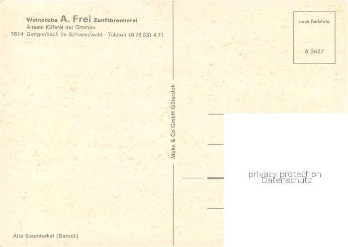 73615462 Gengenbach Weinstube Frei Zunftbrennerei postalisch nicht gelaufen Erhaltung siehe scans [WerneD78] KatCode: 11110008317034