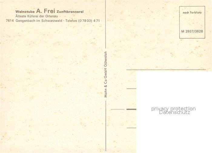 73005839 Gengenbach Weinstube Frei Zunftbrennerei postalisch nicht gelaufen Erhaltung siehe scans [WerneD78] KatCode: 11110008317034