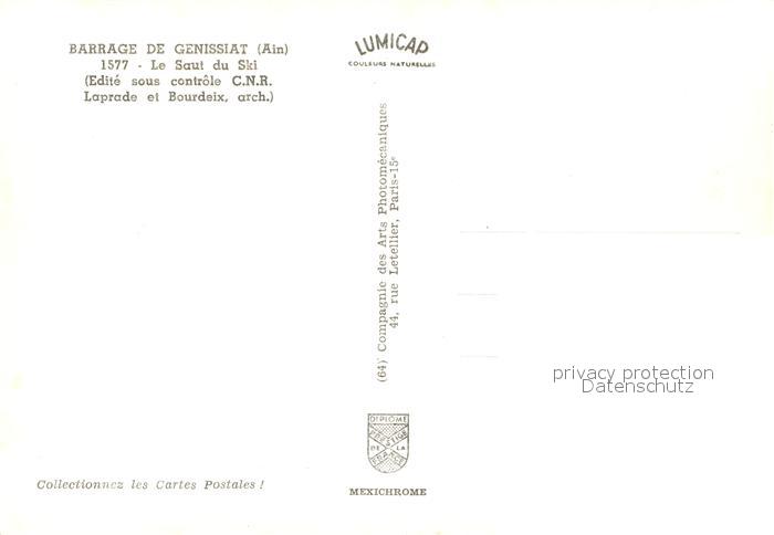 13160519 Genissiat l Ain Fliegeraufnahme Barrage Wasserfall postalisch nicht gelaufen Erhaltung siehe scans [LiesaD40] KatCode: 11170001401189