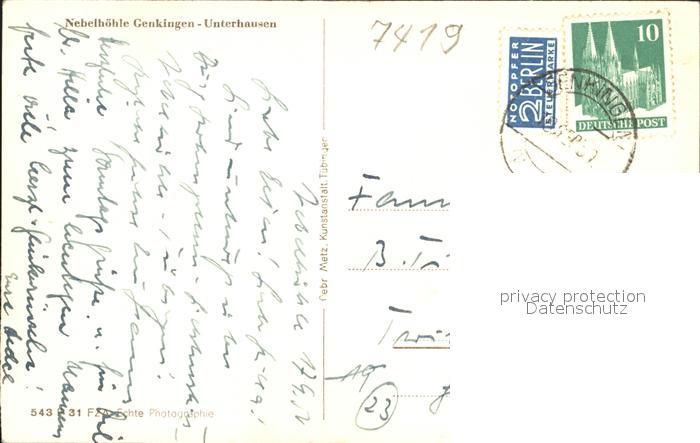 72120207 alte Postkarte Genkingen Nebelhoehle Genkingen Unterhausen postalisch gelaufen KatCode: 11110008415091